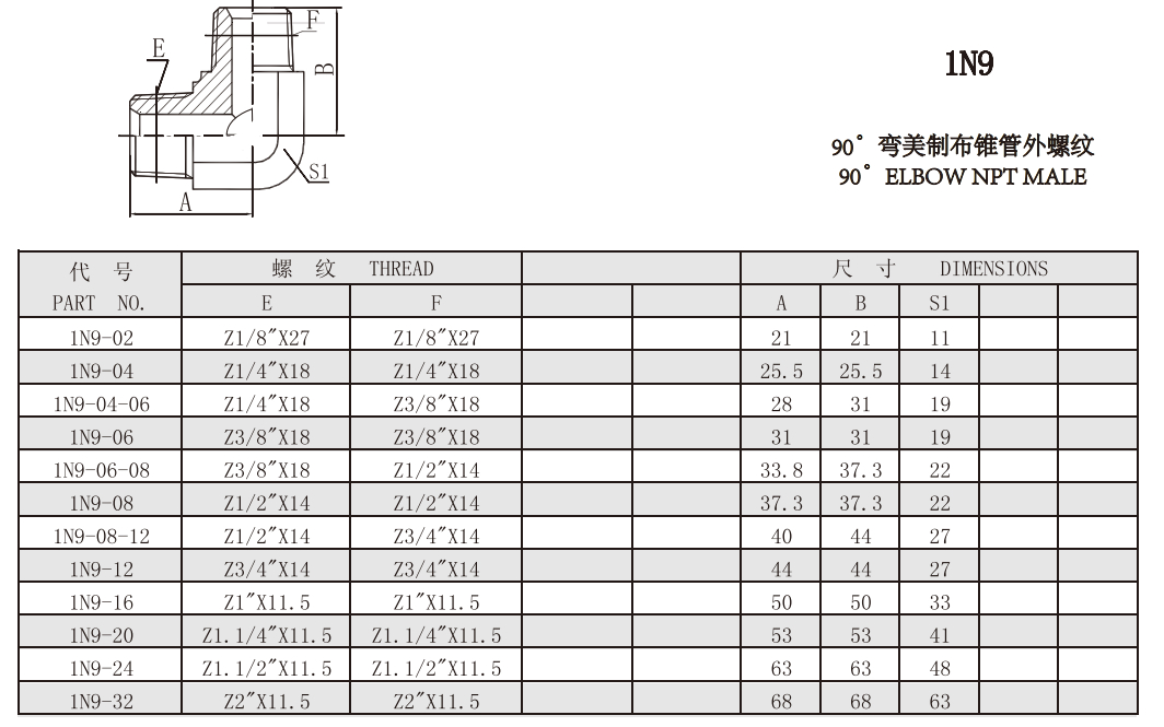 1N9-02,1N9-04,1N9-06,1N9-08,1N9-12,1N9-16,1N9-20,1N9-24,1N9-32,外螺紋接頭