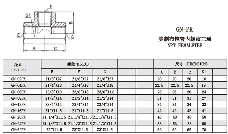 GN-02PK,GN-04PK,GN-06PK,GN-08PK,GN-12PK,GN-16PK,GN-20PK,GN-24PK,GN-32PK,內(nèi)螺紋三通接頭