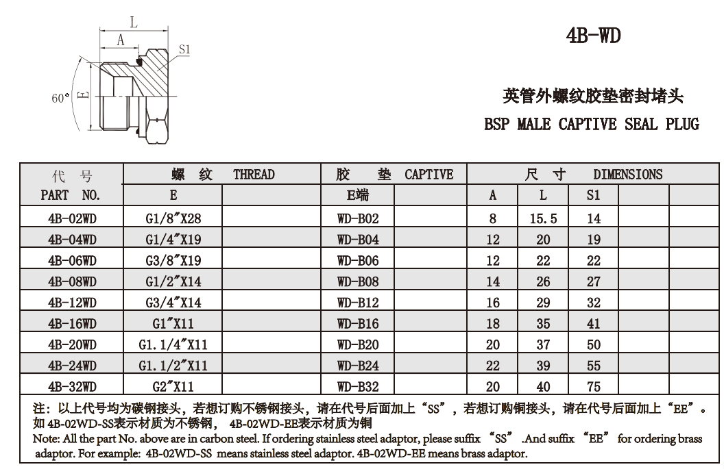 4B-02WD,4B-04WD,4B-06WD,4B-08WD,4B-12WD,4B-16WD,4B-20WD,4B-24WD,4B-32WD,膠墊密封堵頭