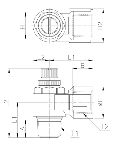 Model ∅P T1 A T2 B L1 L2/MIN L2/MAX E1 E2 H1(Hex) H2(Hex) WEIGHT(g) EA(BOX)