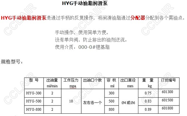 HYG-300,HYG-500,HYG-800,手動(dòng)油脂潤(rùn)滑泵