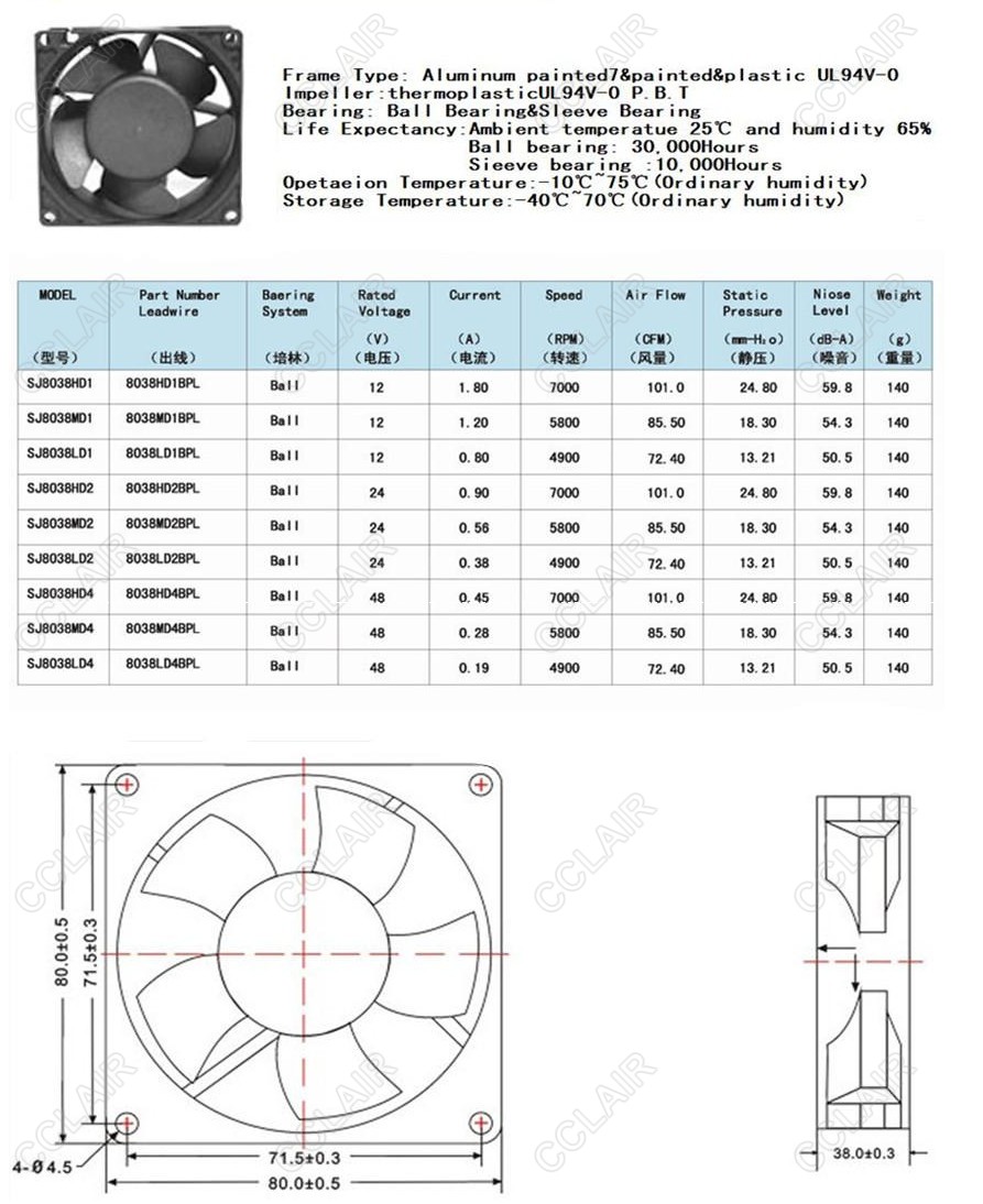 SJ8038HD1,SJ8038MD1,SJ8038LD1,SJ8038HD2,SJ8038MD2,SJ8038LD2,SJ8038,SANJI DC軸流風機 |
