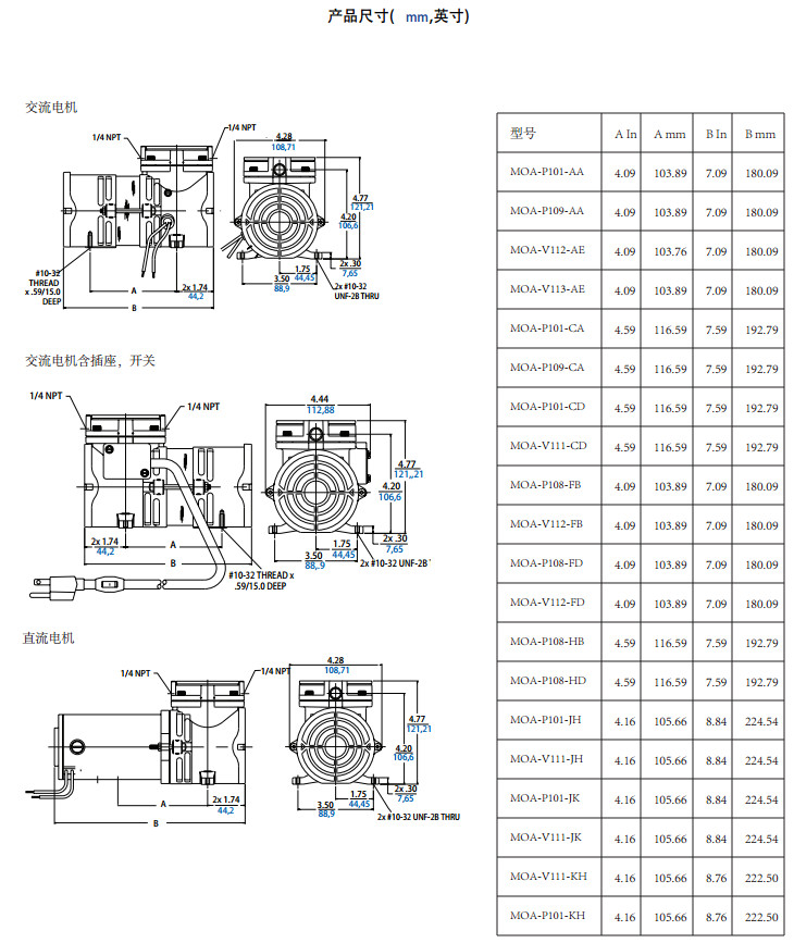 MOA-P101-AA,MOA-P108-HD,MOA-P109-AA,MOA-V111-KH,隔膜式真空泵/壓縮機(jī) |