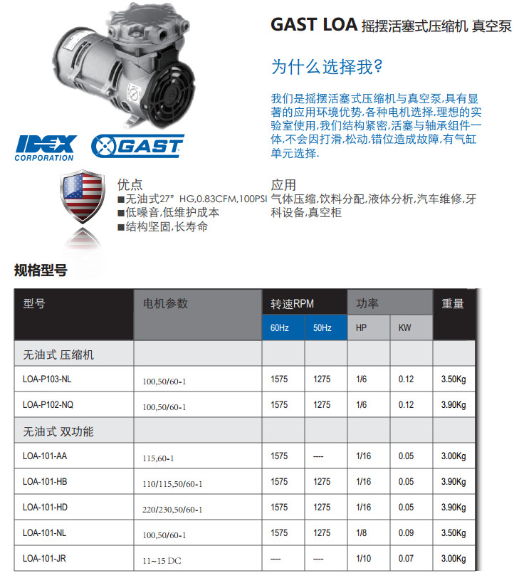 LOA-P103-NL,LOA-P102-NQ,LOA-101-AA,LOA-101-HB,LOA-101-HD,搖擺活塞式壓縮機(jī)/真空泵