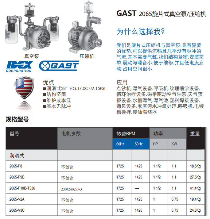 2065-P8,2065-P98,2065-P10B-T336,2065-V2A,2065-V3C,旋片式真空泵/壓縮機