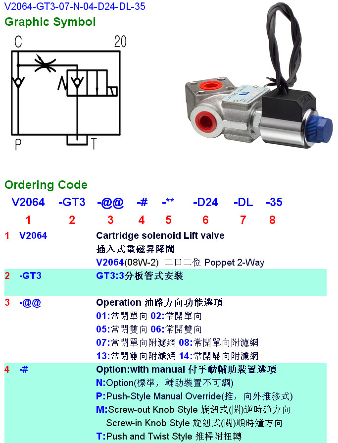V2064-GT3-01,V2064-GT3-02,V2064-GT3-05,V2064-GT3-06,V2064-GT3-08,V2064-GT3-07-N-04-D24-DL-35,HYDROMAX插入式電磁升降閥