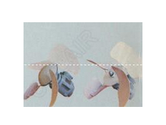 變壓器風(fēng)扇由單級軸流式葉輪和專用電動機構(gòu)成。葉片為等厚板形和機翼形。電動機采用進口低噪聲軸承,軸端采用特殊防水結(jié)構(gòu),止口等部位涂609#高分子液態(tài)密封膠密封,具有良好的防護作用,電動機外殼防護分級為IP55,適用于戶外使用。