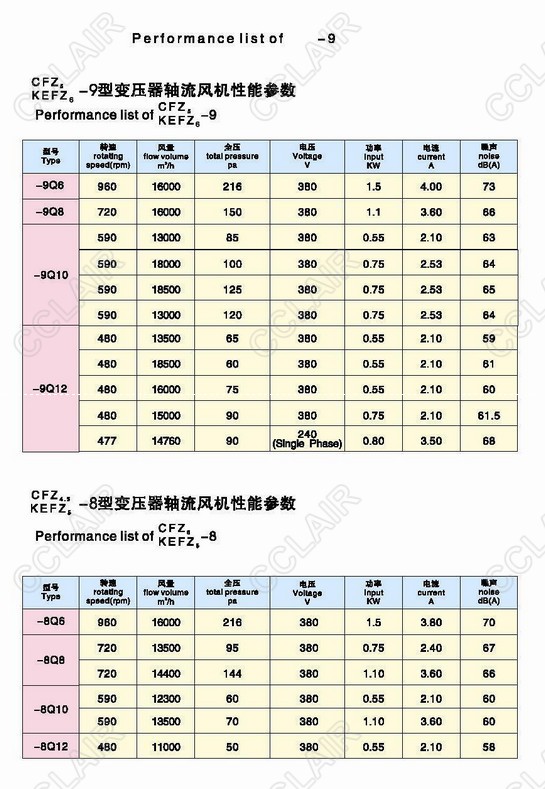 該系列產(chǎn)品規(guī)格品種齊全,覆蓋φ350~φ1200風(fēng)扇直徑,流量3100m3/h~18500 m3/h,全壓30Pa~230Pa,噪聲50dB(A)~75 dB(A)各種規(guī)格產(chǎn)品,廣泛適用于變壓器散熱器、冷卻器的配套使用。