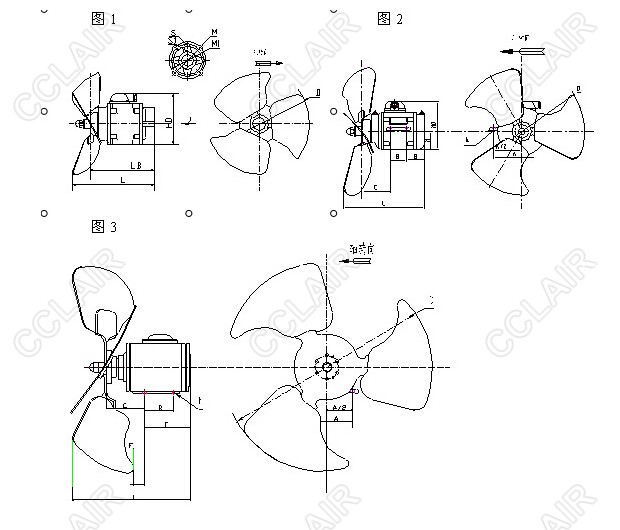 前吹(空氣由電動(dòng)機(jī)流向葉輪) |