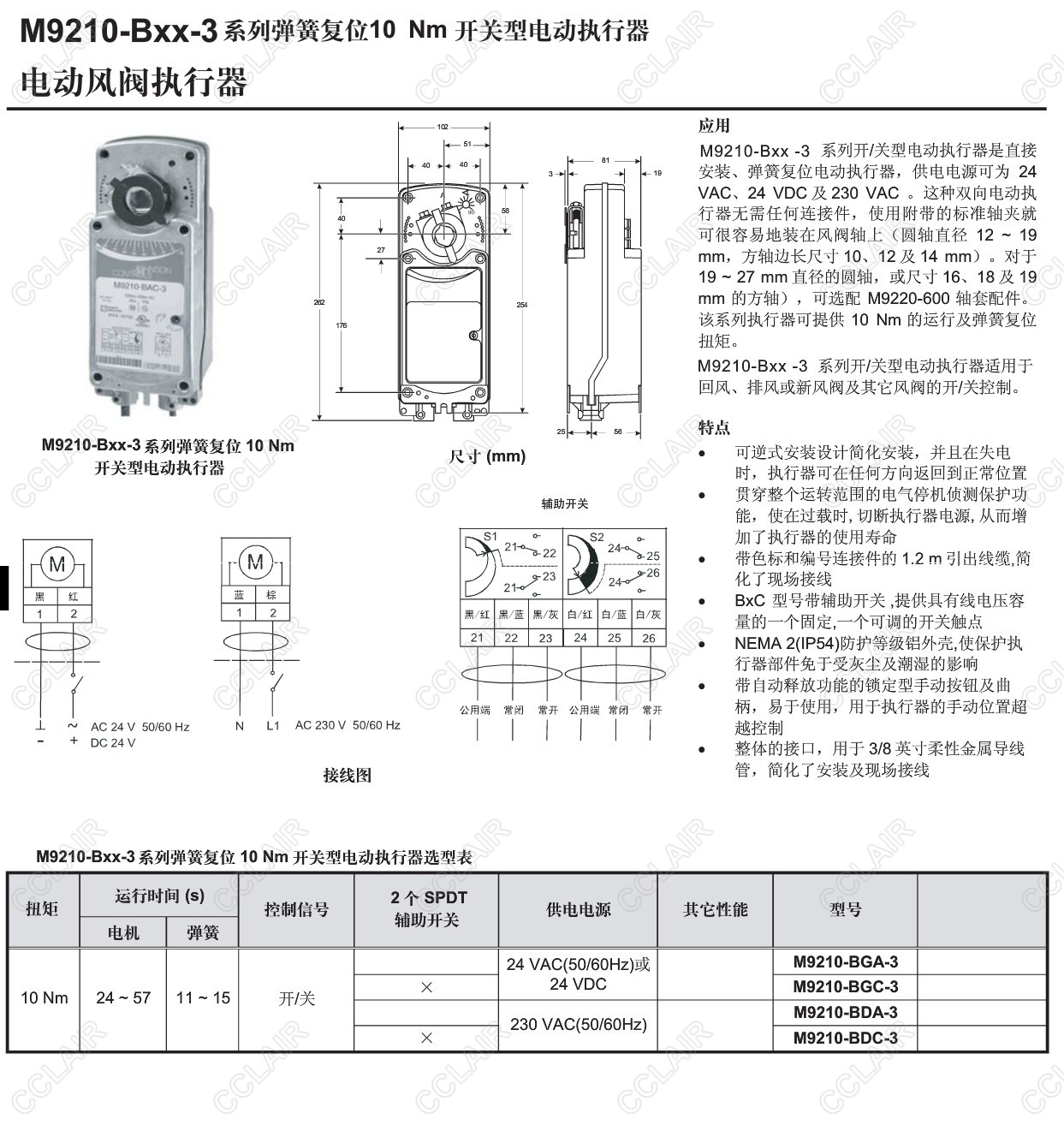 M9210-BGA-3,M9210-BGC-3,M9210-BDA-3,M9210-BDC-3,M9210-Bxx-3,電動風閥執(zhí)行器 |