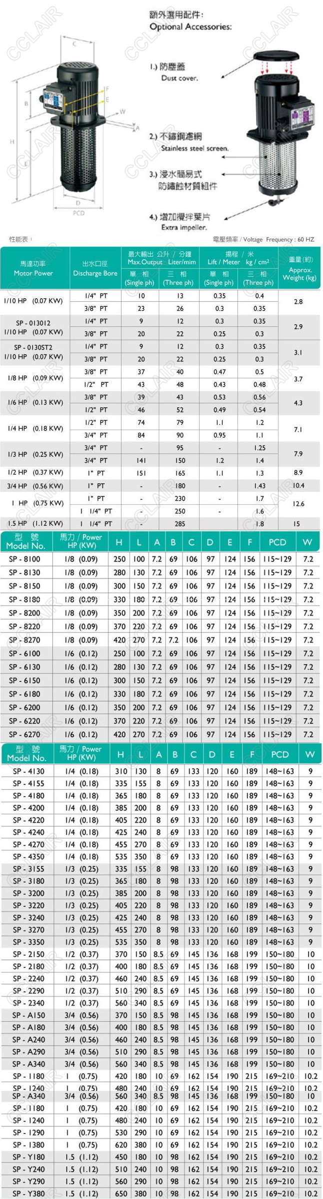 SP-8100,SP-8130,SP-8150,SP-8180,SP-8200,SP-8220,SP-8270,SP過濾型冷卻泵浦FLAIR