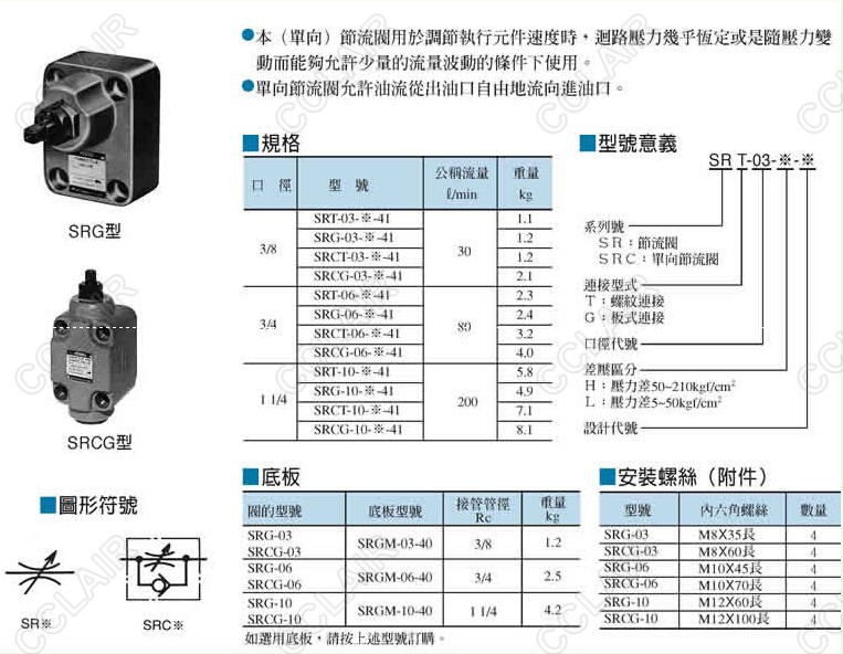 型號(hào): SRT-03-H-41,SRG-03-H-41,SRG-06-L-41,SRCT-06-H-41,SRCG-10-L-41