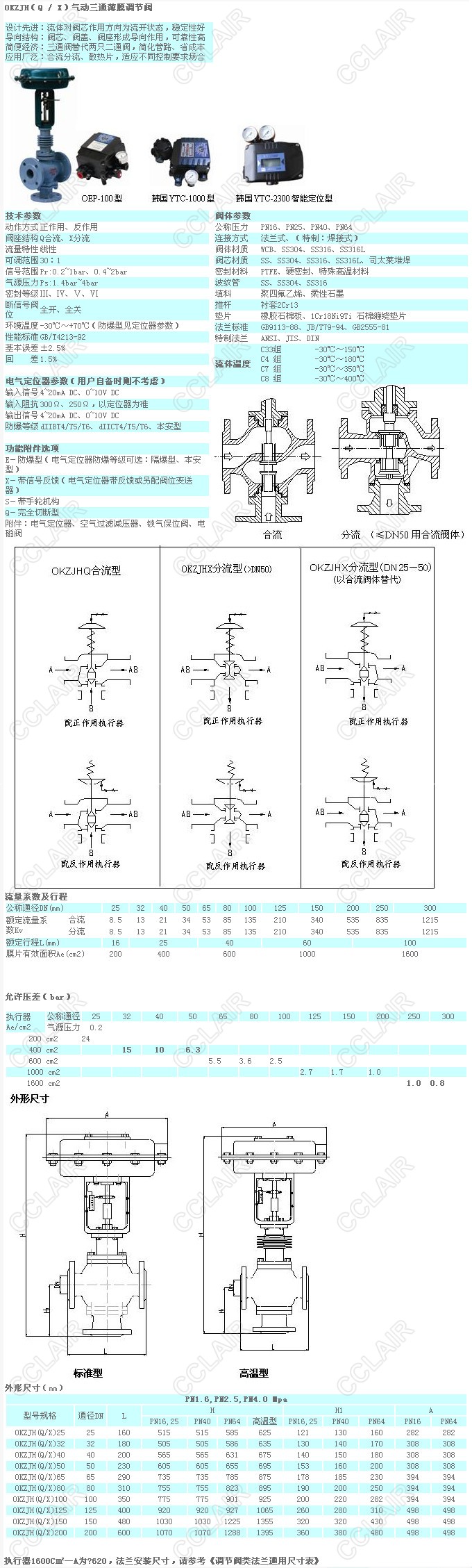 OKZJH(Q/X)25,OKZJH(Q/X)80,OKZJH(Q/X)100,OKZJH(Q/X)200,OKZJH(Q/X),氣動(dòng)三通薄膜調(diào)節(jié)閥
