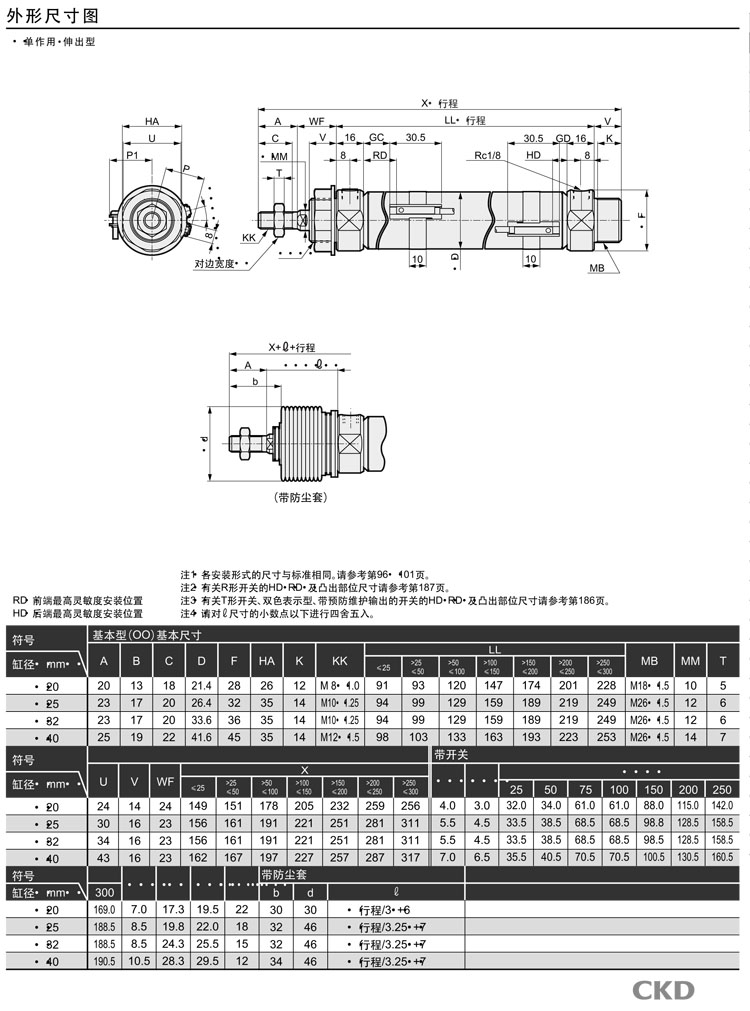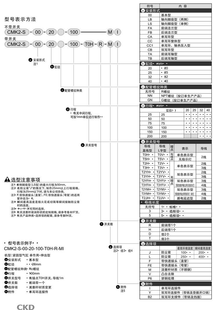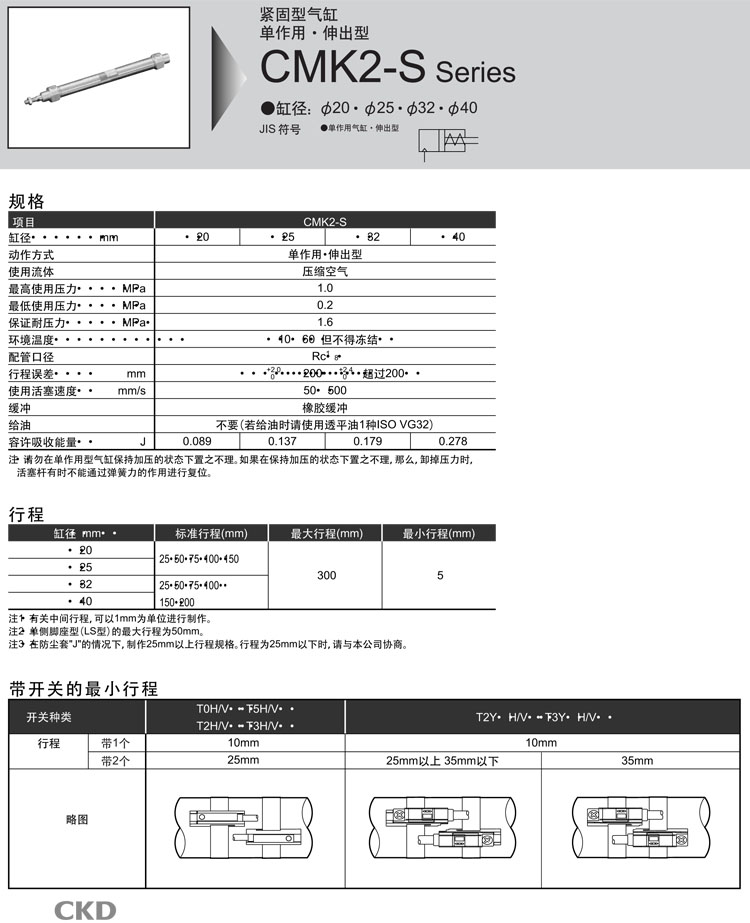 CMK2-S-00-20-25,CMK2-S-00-20-50,CMK2-S-00-20-75,CMK2-S-00-20-100,CMK2-S-00-20-150,CKD緊固型氣缸