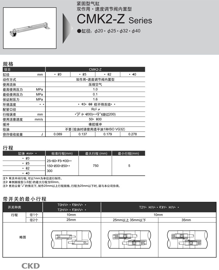 CMK2-Z-00-20-25,CMK2-Z-00-20-50,CMK2-Z-00-20-75,CMK2-Z-00-20-100,CMK2-Z-00-20-150,CKD緊固型氣缸