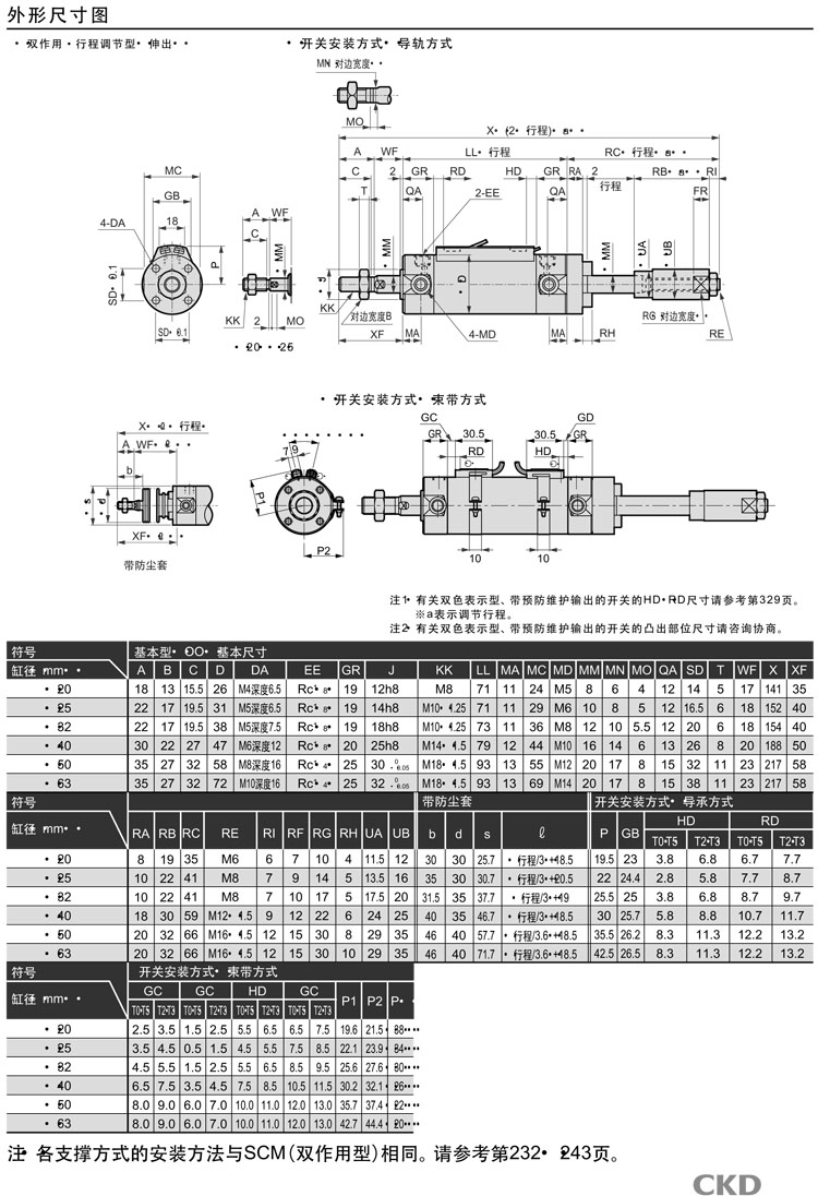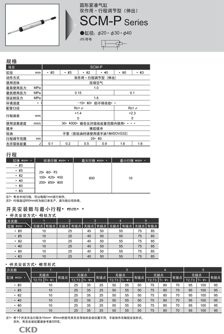 SCM-P-00,SCM-P-LB,SCM-P-FA,SCM-P-TA,SCM-P-TB,SCM-P-TB-63D-150,CKD圓形緊湊氣缸
