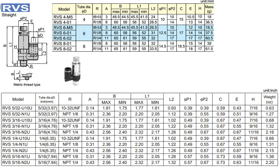 RVS4-01,RVS6-01,RVS6-02,RVS8-02,RVS5/32-U10U,RVS3/16-U10U,RVS3/16-N1U,RVS1/4-U10U,