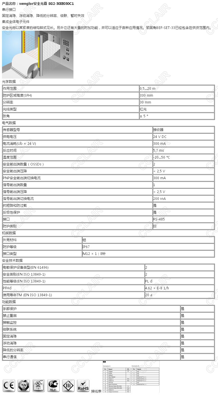 SG2-30IE030C1,wenglor安全光幕