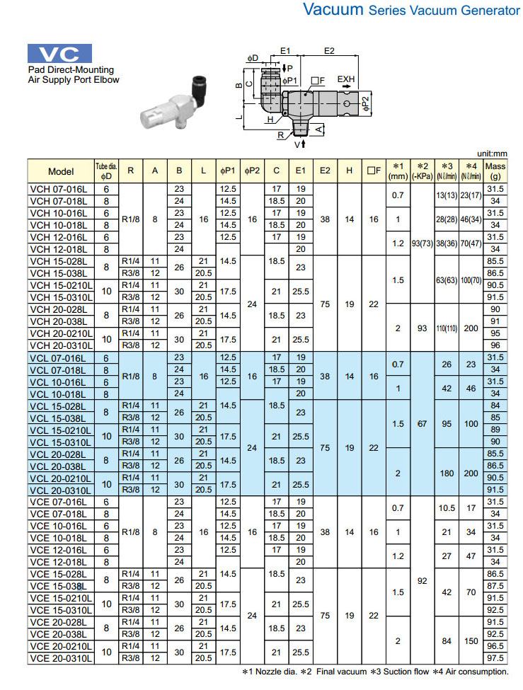 VCH07-016L,VCH10-016L,VCH12-018L,VCH20-028L,VCL07-018L,VCL20-028L,VCE15-038L,PISCO真空發(fā)生器