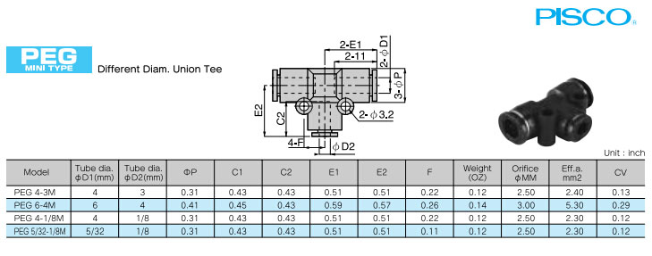 PEG4-3M,PEG6-4M,PEG4-1/8M,PEG5/32-1/8M,PISCO快速接頭
