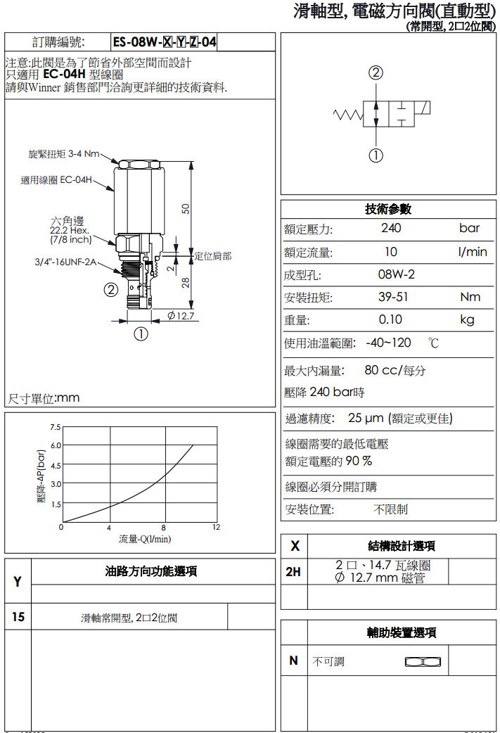 ES-08W-2H-14-N-04,ES-08W-2H-15-N-04,winner滑軸型電磁方向閥
