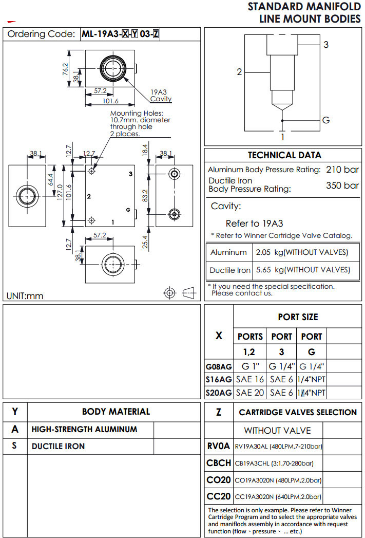 ML-19A3-G08AG-A03-RV0A,ML-19A3-S16AG-A03-RV0A,ML-19A3-S20AG-A03-RV0A,winner標準配管式油路板 |