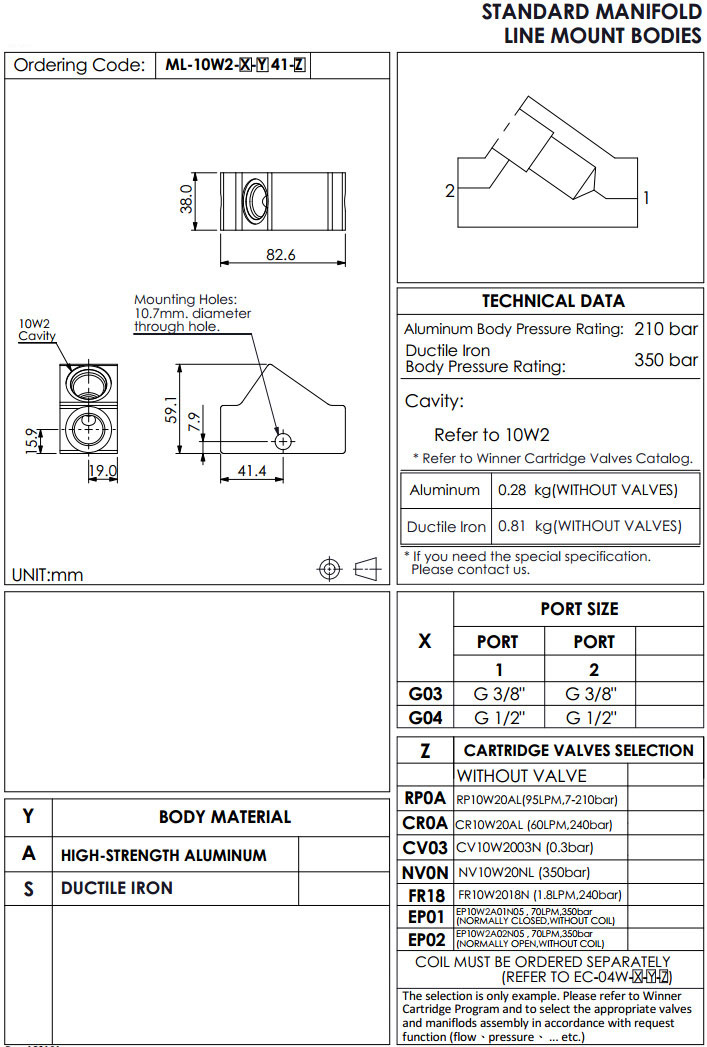 型號: ML-10W2-G03-A41-RP0A,ML-10W2-G04-A41-RP0A,ML-10W2-G03-S41-RP0A,ML-10W2-G04-S41RP0A,winner標(biāo)準(zhǔn)配管式油路板