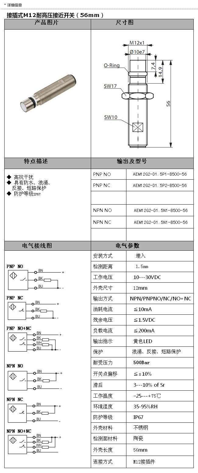 AEM12G2-D1.5P1-B500-56,AEM12G2-D1.5N1-B500-56,AEM12G2-D1.5N1-B500-56,M12接插式(56mm