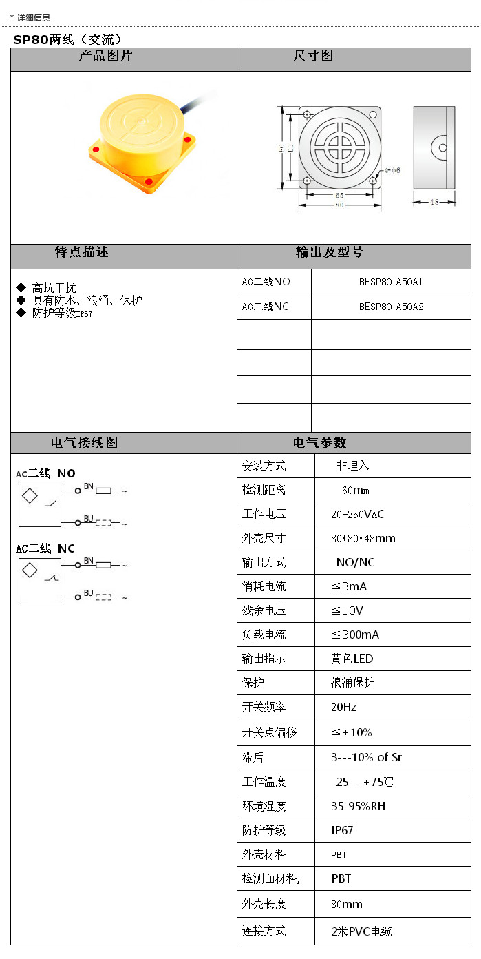 BESP80-A50A1,BESP80-A50A2,SP80交流兩線
