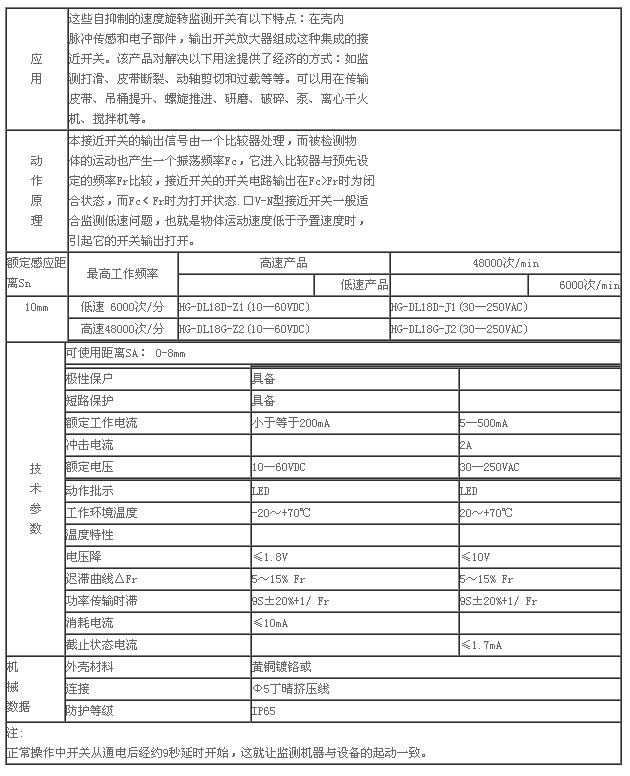 速度檢測開關(guān) HG-DL18D-Z1,HG-DL18D-J1,HG-DL18G-Z2,HG-DL18G-J2,