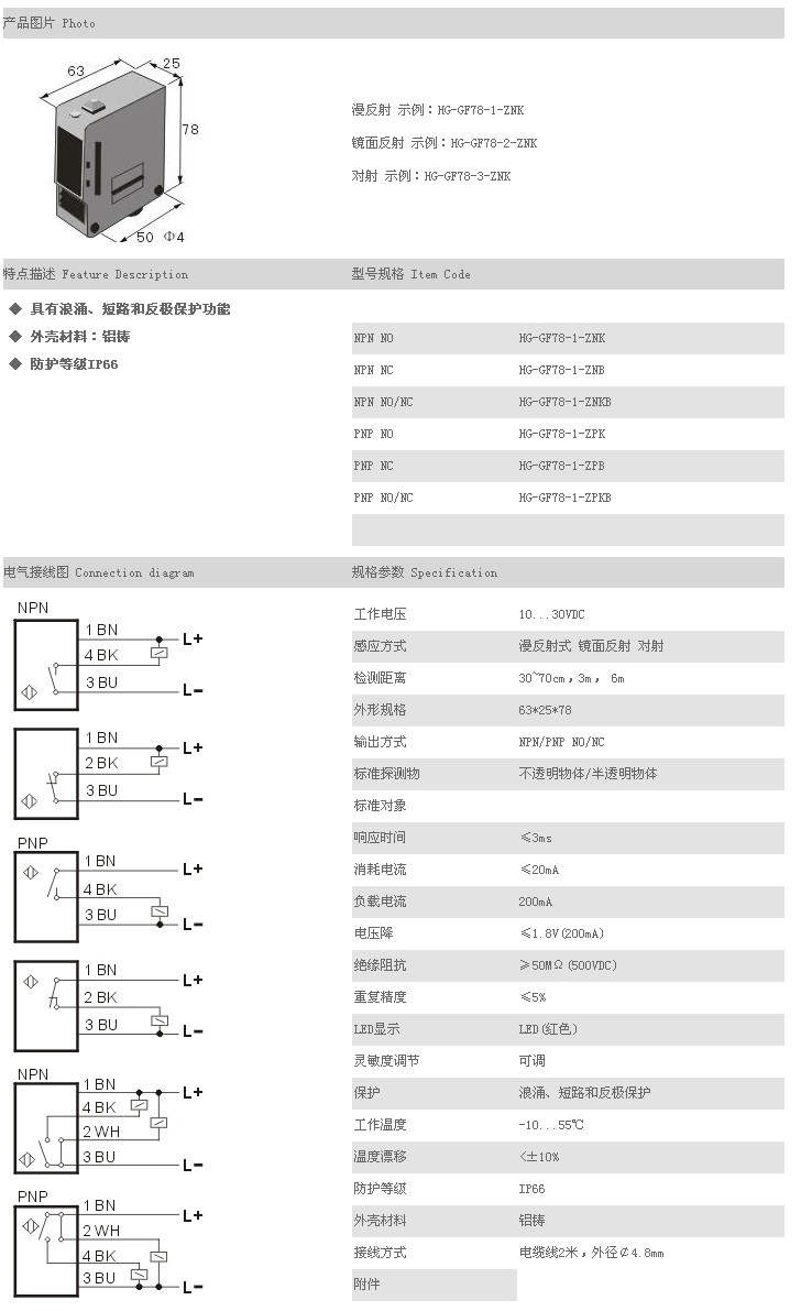 方型光電開關(guān)/傳感器 HG-GF78-1-ZNK,HG-GF78-1-ZNB,HG-GF78-1-ZNKB,HG-GF78-1-ZPK,HG-GF78-1-ZPB,HG-GF78-1-ZPKB, |