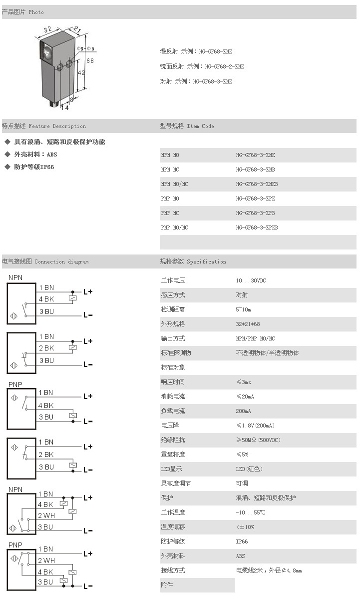 /傳感器 HG-GF68-3-ZNK,HG-GF68-3-ZNB,HG-GF68-3-ZNKB,HG-GF68-3-ZPK,HG-GF68-3-ZPB,HG-GF68-3-ZPKB
