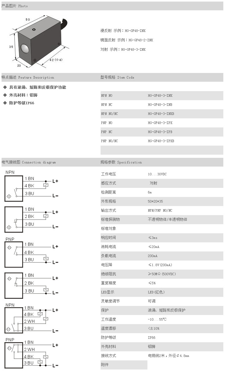 /傳感器 HG-GF48-3-ZNK,HG-GF48-3-ZNB,HG-GF48-3-ZNKB,HG-GF48-3-ZPK,HG-GF48-3-ZPB,HG-GF48-3-ZPKB