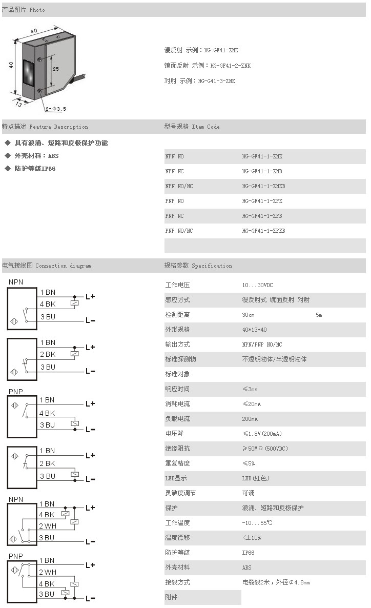 方型光電開關/傳感器 HG-GF41-1-ZNK,HG-GF41-1-ZNB,HG-GF41-1-ZNKB,HG-GF41-1-ZPK,HG-GF41-1-ZPB,HG-GF41-1-ZPKB |