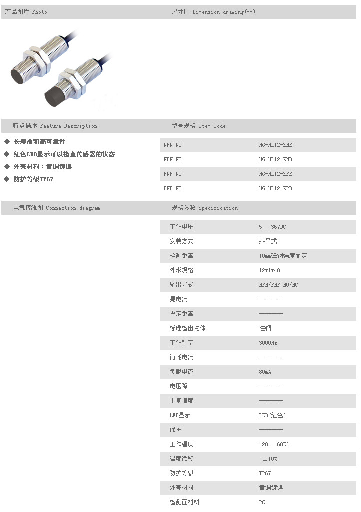 霍爾傳感器 HG-HL12-ZNK,HG-HL12-ZNB,HG-HL12-ZPK,HG-HL12-ZPB,