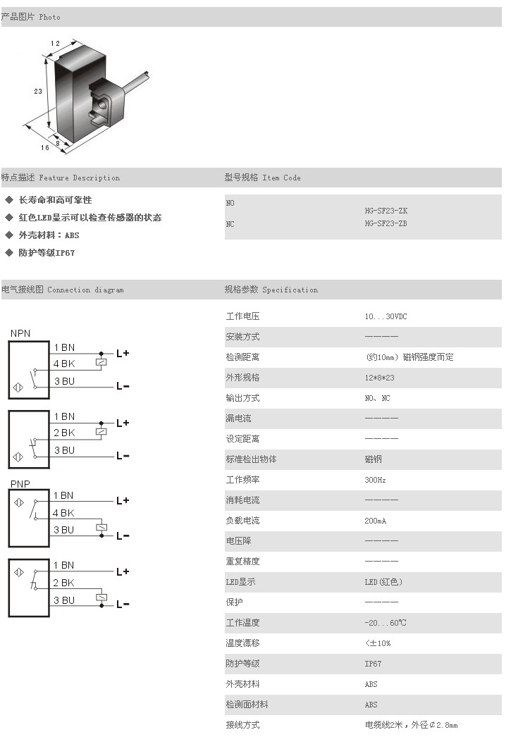普通型磁性開關 HG-SF23-ZK,HG-SF23-ZB,