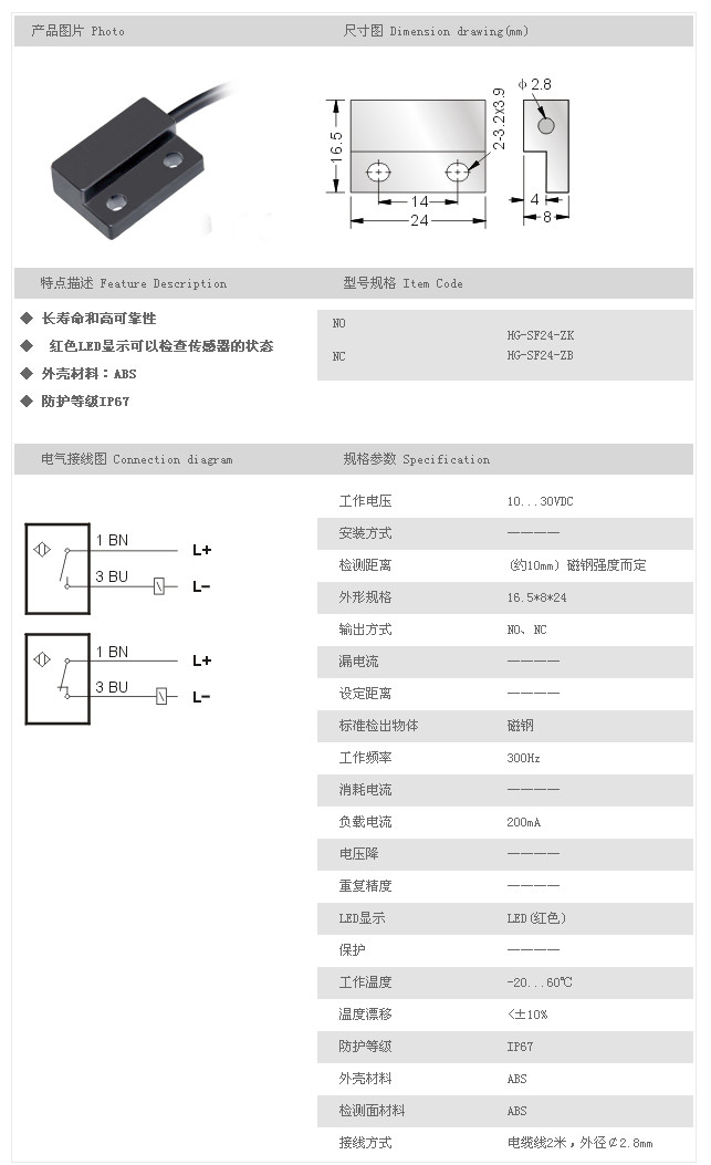 普通型磁性開(kāi)關(guān) HG-SF24-ZK,HG-SF24-ZB,