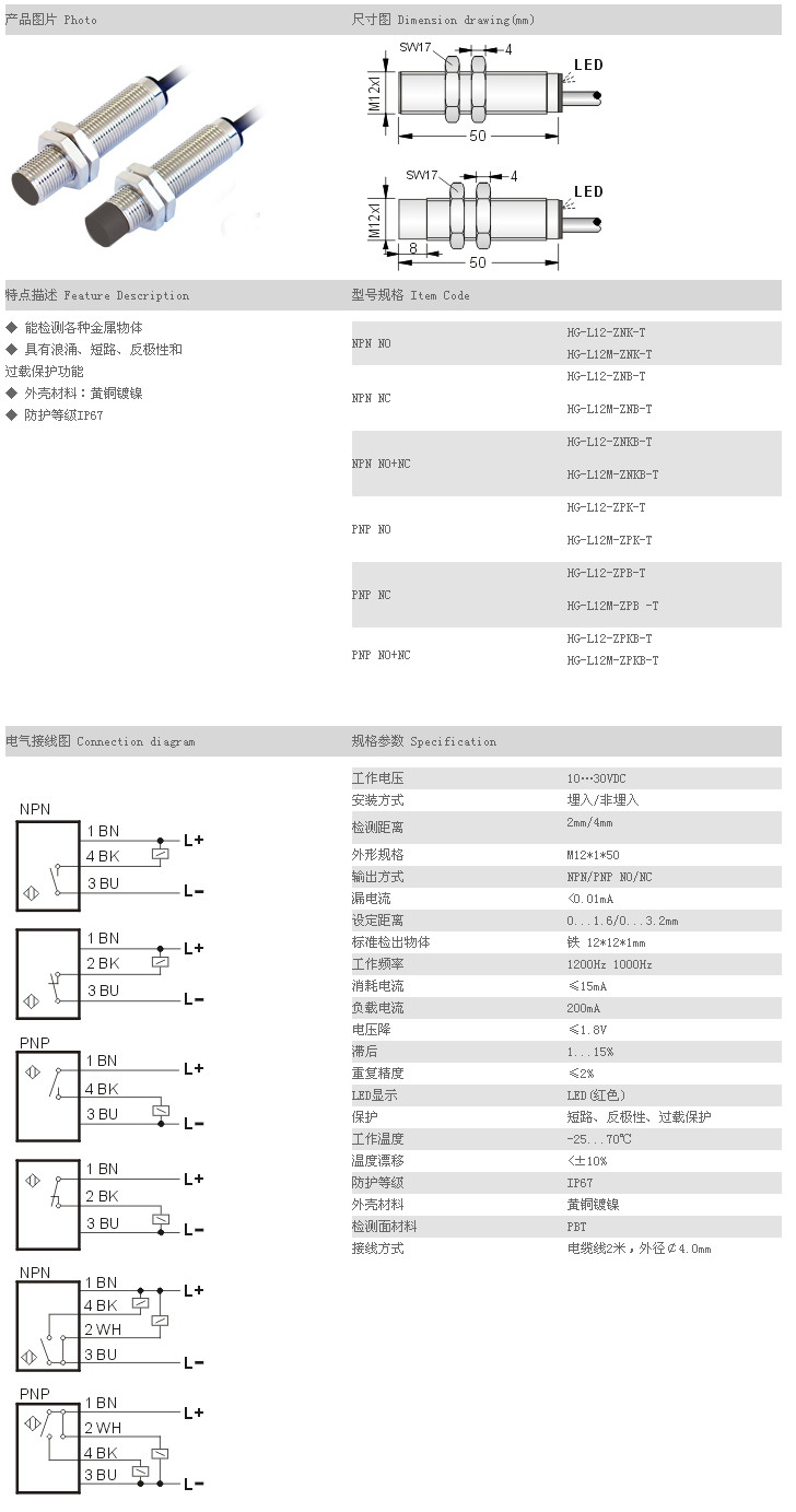 防水/防油/防腐蝕接近開關(guān) HG-L12-ZNK-T,HG-L12M-ZNK-T,HG-L12-ZNB-T,HG-L12M-ZNB-T,HG-L12-ZNKB-T,HG-L12M-ZNKB-T,HG-L12-ZPK-T,HG-L12M-ZPK-T,HG-L12-ZPB-T,HG-L12M-ZPB-T,HG-L12-ZPKB-T,HG-L12M-ZPKB-T,
