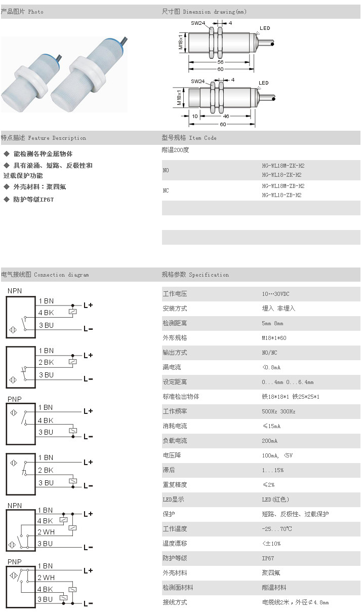耐高溫接近開關(guān)(低溫) HG-WL18M-ZK-H2,HG-WL18-ZK-H2,HG-WL18M-ZB-H2,HG-WL18-ZB-H2,