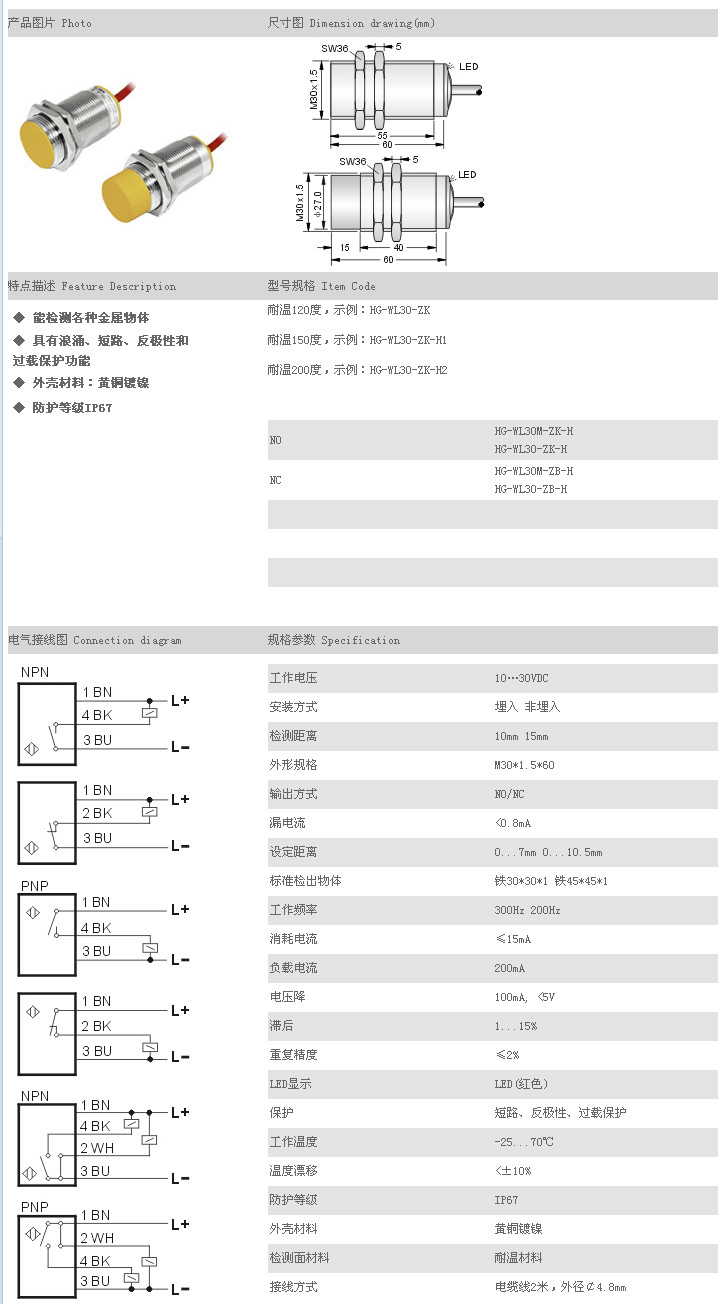 耐高溫接近開(kāi)關(guān)(低溫) HG-WL30M-ZK-H,HG-WL30-ZK-H,HG-WL30M-ZB-H,HG-WL30-ZB-H,