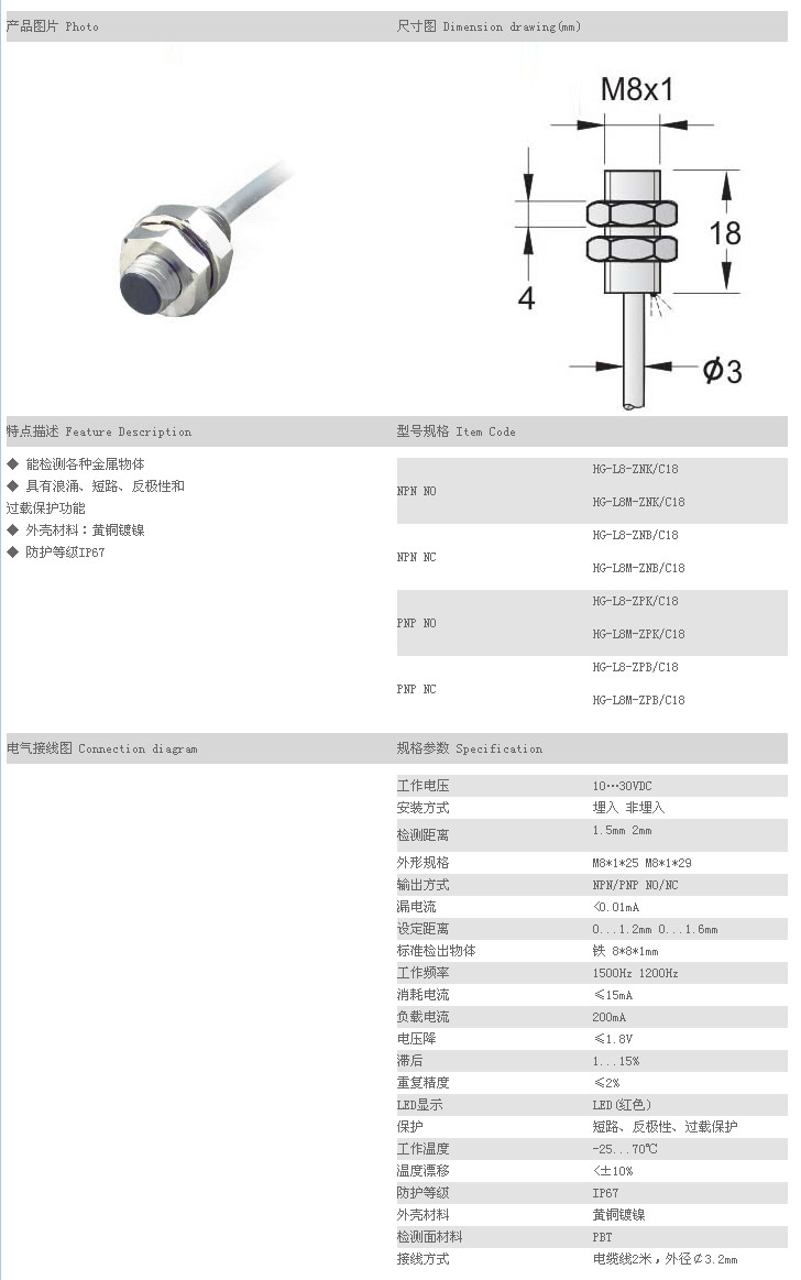 超小型接近開(kāi)關(guān) HG-L8-ZNK/C18,HG-L8M-ZNK/C18,HG-L8-ZNB/C18,HG-L8M-ZNB/C18,HG-L8-ZPK/C18,HG-L8M-ZPK/C18,HG-L8-ZPB/C18,HG-L8M-ZPB/C18,