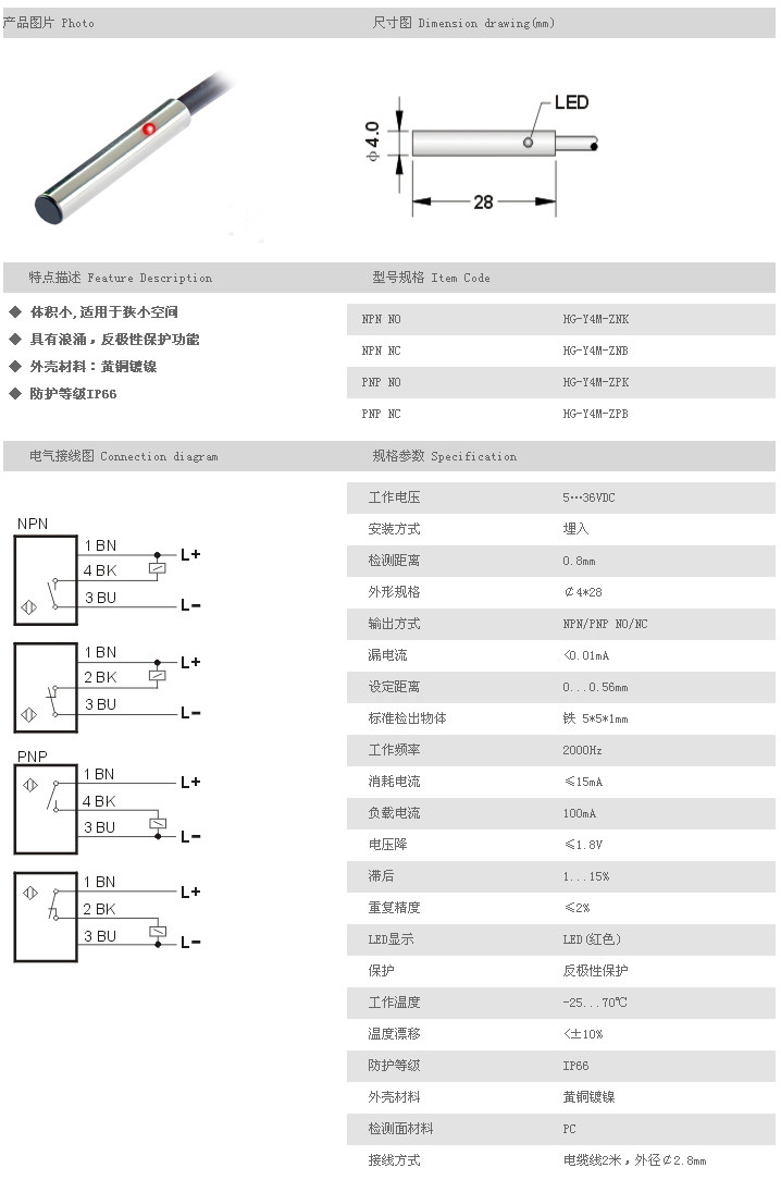 超小型接近開關(guān) HG-Y4M-ZNK,HG-Y4M-ZNB,HG-Y4M-ZPK,HG-Y4M-ZPB,