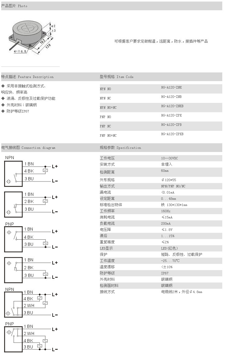 餅型接近傳感器 HG-A120-ZNK,HG-A120-ZNB,HG-A120-ZNKB,HG-A120-ZPK,HG-A120-ZPB,HG-A120-ZPKB,