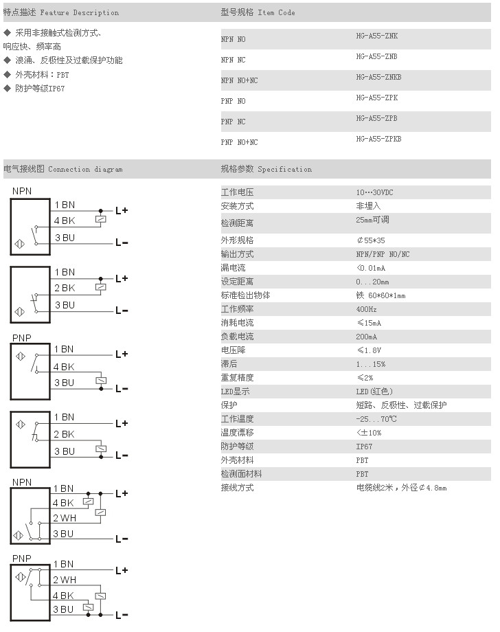 餅型接近傳感器 HG-A55-ZNK,HG-A55-ZNB,HG-A55-ZNKB,HG-A55-ZPK,HG-A55-ZPB,HG-A55-ZPKB,