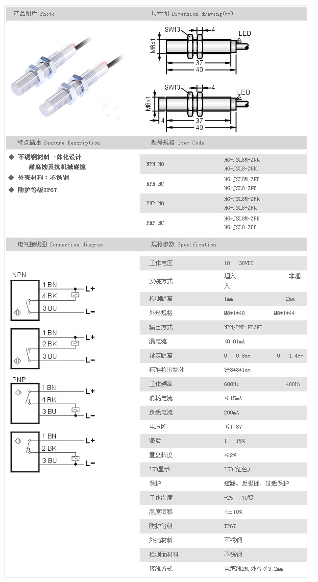 金屬探頭型接近開關(guān) HG-JSL8M-ZNK,HG-JSL8-ZNK,HG-JSL8M-ZNB,HG-JSL8-ZNB,HG-JSL8M-ZPK,HG-JSL8-ZPK,HG-JSL8M-ZPB,HG |
