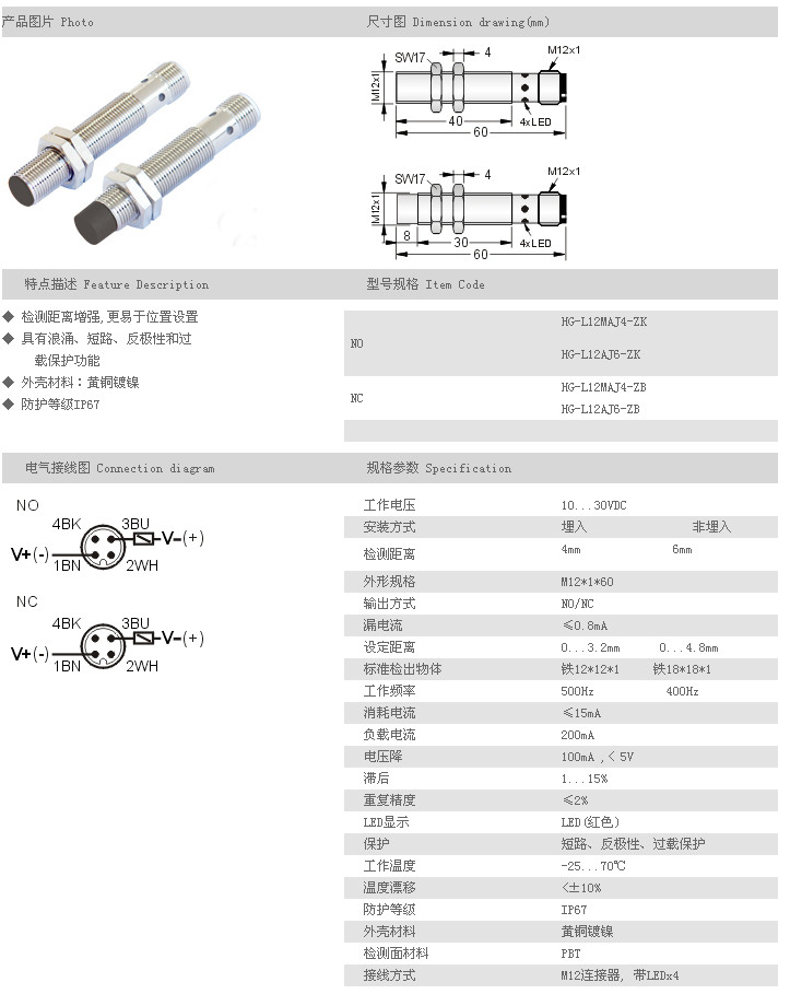 遠(yuǎn)距離型接近開關(guān) HG-L12MAJ4-ZK,HG-L12AJ6-ZK,HG-L12MAJ4-ZB,HG-L12AJ6-ZB,