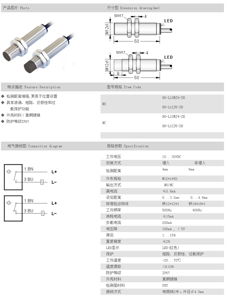遠距離型接近開關 HG-L12MJ4-ZK,HG-L12J6-ZB,HG-L12MJ4-ZK,HG-L12J6-ZB,