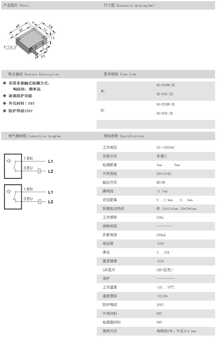 方型接近開關(guān) HG-F26M-JK,HG-F26-JK,HG-F26M-JB,HG-F26-JB,