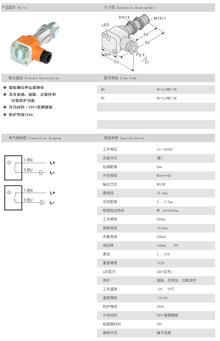 圓柱型接近開關(guān) HG-L18MZ-ZK,HG-L18MZ-ZB,