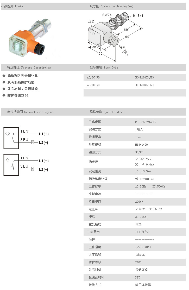 L18MZ圓柱型接近開(kāi)關(guān) HG-L18MZ-JZK,HG-L18MZ-JZB,